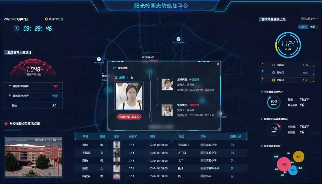 圖 通過陽光校園態勢感知平臺,教育管理部門可實時了解校園疫情信息,查看異常情況閉環進度